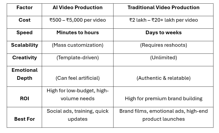 AI vs. Traditional Video Production: Comparison Table